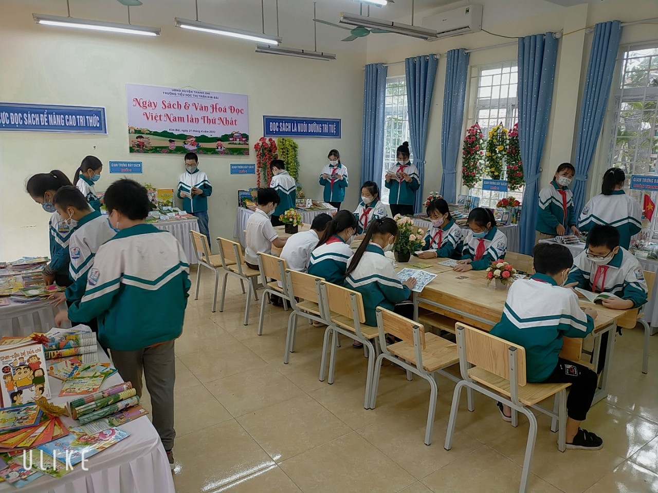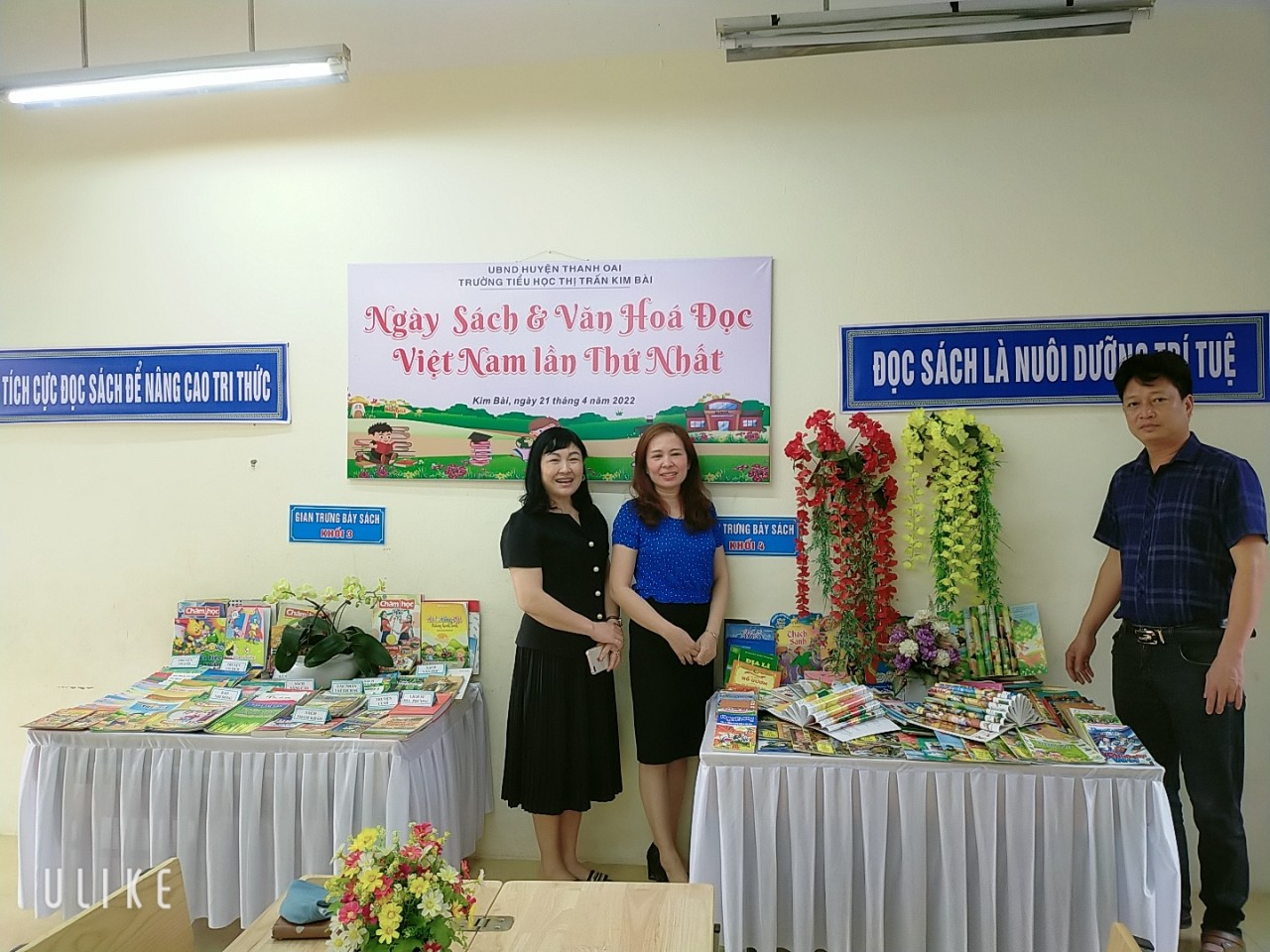 Hưởng ứng Ngày sách và văn hóa đọc Việt Nam Liên đội trường Tiểu học thị trấn Kim Bài đã phát động học sinh ủng hộ sách truyện để tổ chức hội thi trưng bày sách giữa các khối. Phòng trưng bày gồm có 05 gian trưng bày sách của các khối lớp từ khối 1 đến khối 5 và 01 gian trương bày sách của Đoàn thanh niên. Sau khi chấm thi sẽ mở cửa để học sinh và giáo viên vào tham quan và đọc sách trong giờ giải lao, tiết thư viện được tổ chức với nội dung, hình thức thiết thực, hiệu quả; gắn với việc triển khai thực hiện Nghị quyết Đại hội Đảng các cấp và các ngày lễ lớn trong năm. Hình thức phải phù hợp với tình hình cả nước đang tích cực chung tay phòng, chống dịch Covid-19 theo chỉ đạo của Thủ tướng Chính phủ.
