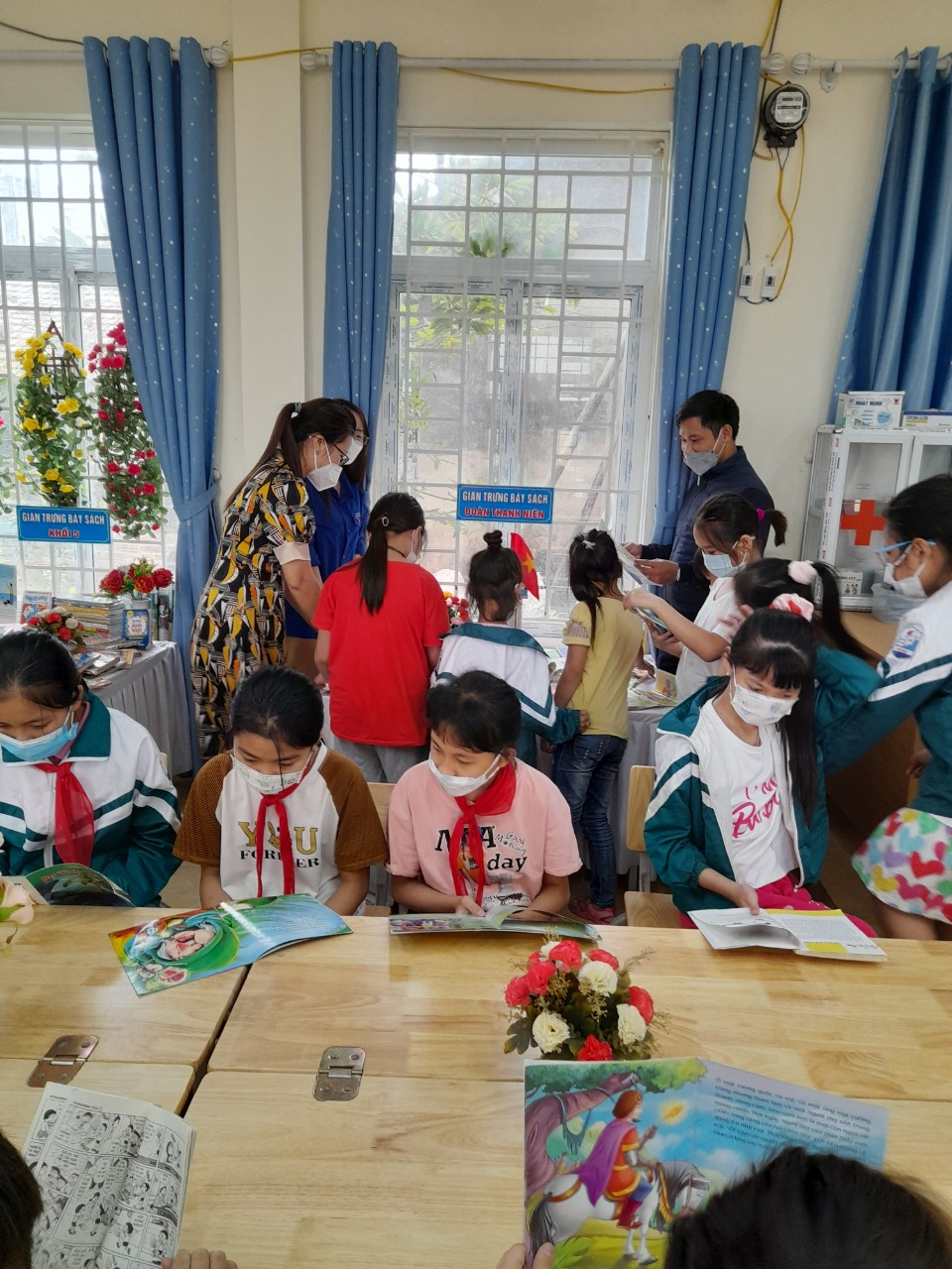 Dưới đây là một số hình ảnh về các gian trưng bày và các thầy cô giáo, học sinh hưởng ứng Ngày hội đọc sách 21/4/2022.