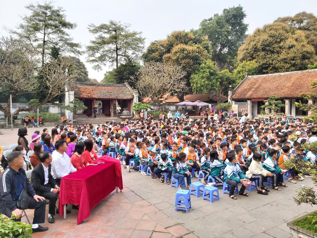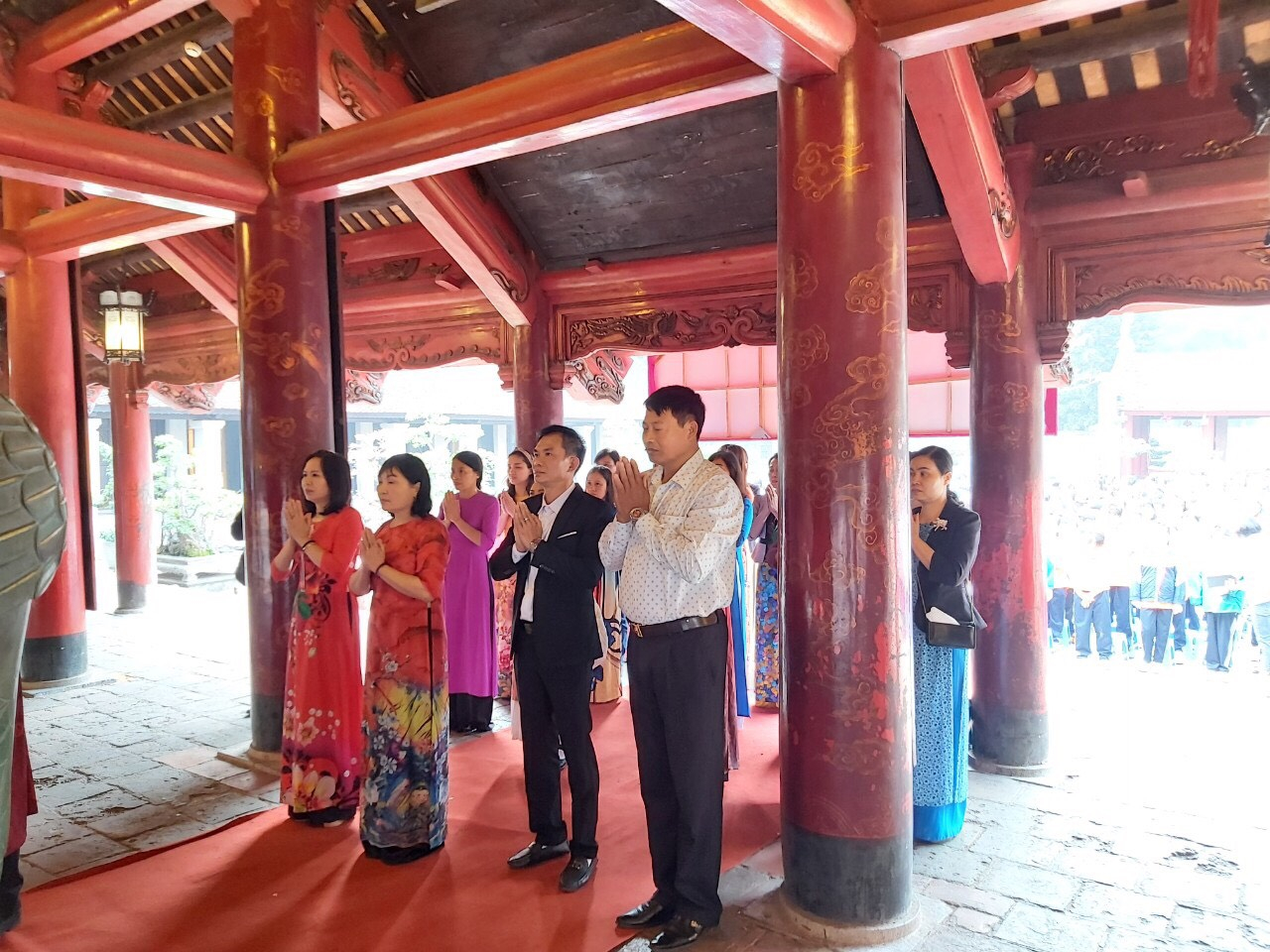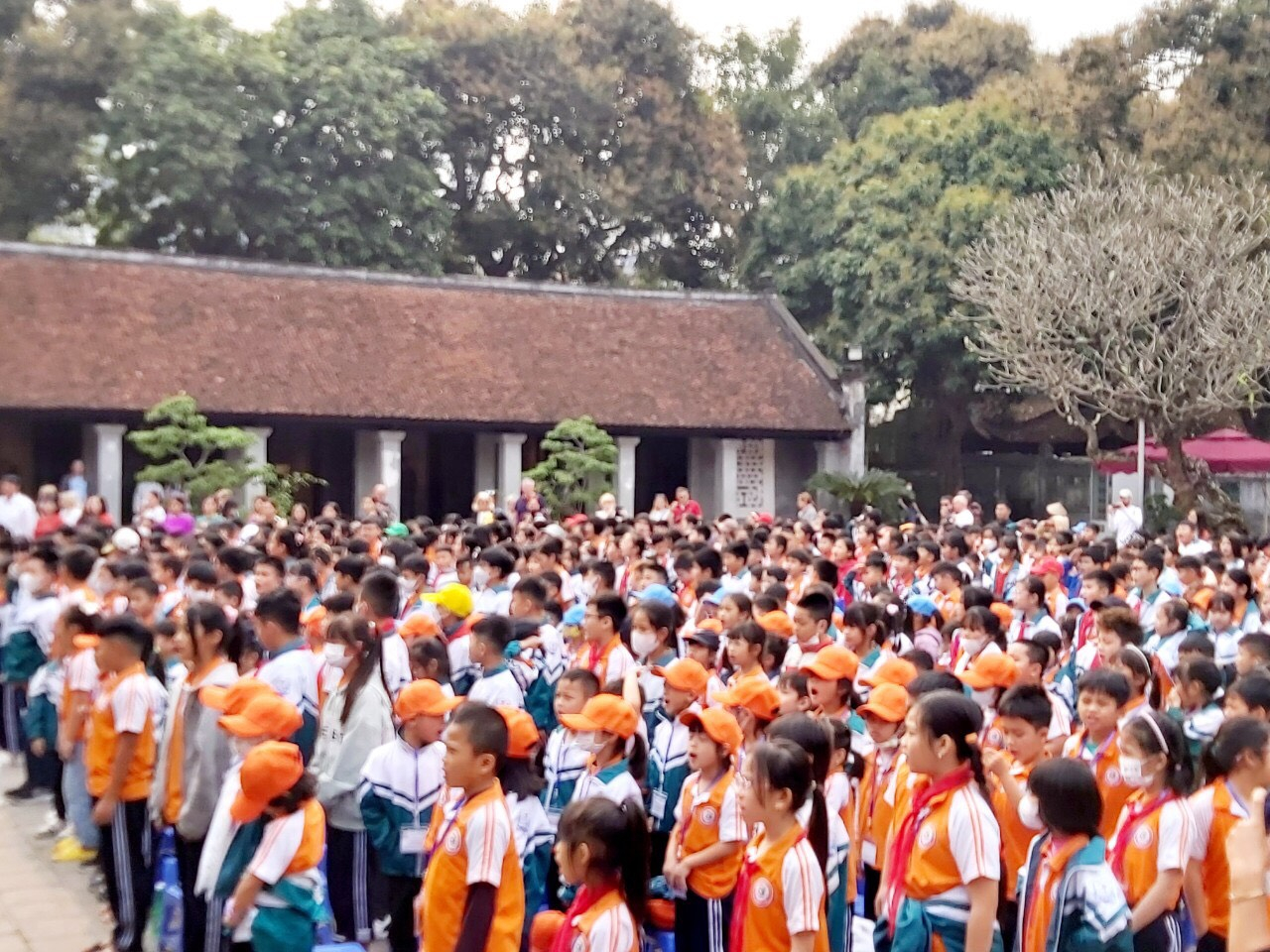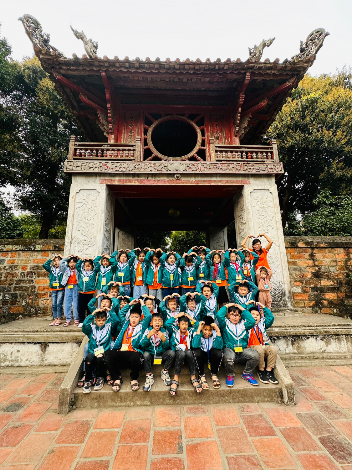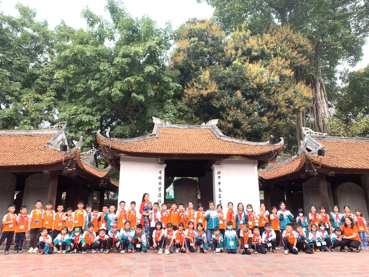 Tiếp sau đó thầy và trò nhà trường được nghe cô hướng dẫn viên du lịch nói về Lịch sử Văn Miếu Quốc Tử Giám: Văn Miếu được xây dựng năm 1070 dưới thời vua Lý Thánh Tông, là nơi thờ Khổng Tử, Chu Công và Tứ phối. Đến năm 1076, vua Lý Nhân Tông cho lập thêm Quốc Tử Giám bên cạnh là trường đại học dành riêng cho con vua và các gia đình quý tộc. Đến thời vua Trần Thái Tông, Quốc Tử Giám được đổi tên thành Quốc học viện và thu nhận cả con cái nhà thường dân có sức học xuất sắc.Sang thời hậu Lê, đời vua Lê Thánh Tông bắt đầu cho dựng bia của những người thi đỗ tiến sĩ. Tới thời Nguyễn, Quốc Tử Giám được lập Huế. Văn miếu Thăng Long được sửa sang lại chỉ còn là Văn Miếu của trấn Bắc Thành, sau đổi thành Văn Miếu Hà Nội.