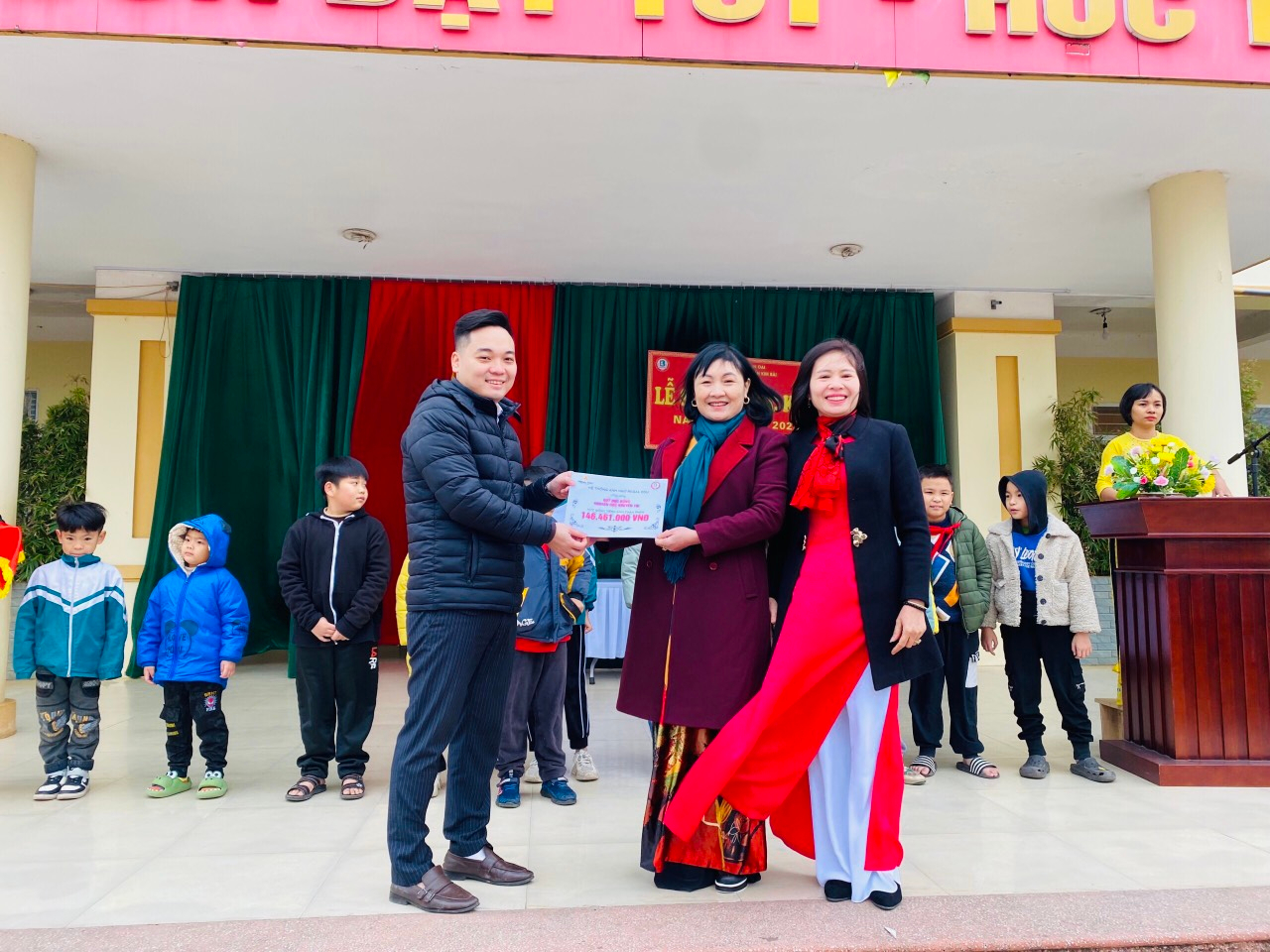 Một nửa chặng đường của năm học 2022 - 2023 của thầy và trò trường Tiểu học thị trấn Kim Bài đã trôi qua. Đây là năm học đầy thử thách đối với ngành giáo dục nói chung và của trường Tiểu học thị trấn Kim Bài nói riêng với việc tiếp cận khoa học công nghệ hiện đại nhằm đáp ứng với việc dạy và học, tiếp tục thi đua nâng cao chất lượng giáo dục toàn diện, là năm học có nhiều cơ hội nhưng cũng có nhiều thách thức. Khó khăn là đấy nhưng cũng không kém phần sôi động với tinh thần vượt khó, năng động sáng tạo, yêu nghề mến trẻ của các thầy giáo, cô giáo nhà trường đã hoàn thành xuất sắc nhiệm vụ của mình. Lễ sơ kết nhằm đánh giá lại nửa chặng đường của một năm học mà thầy và trò nhà trường đã, đang và tiếp tục nỗ lực phấn đấu, thực hiện tốt các nhiệm vụ trọng tâm của nămhọc. Trong không khí vui tươi chuẩn bị chào đón mùa xuân mới, sáng ngày 17/01/2023, nhà trường đã tổ chức Lễ Sơ kết học kỳ I năm học 2022 - 2023. Về dự với buổi lễ sơ kết có cô giáo Lê Thị Kim Thái - Bí Thư Chi bộ - Hiệu trưởng nhà trường, cô giáo Nguyễn Thị Thu Chung – Phó Bí Thư Chi bộ - Phó Hiệu trưởng nhà trường, ông Phạm Ngọc Hiếu – Giám đốc Trung tâm anh ngữ REGAL EDU Kim Bài và các thầy cô giáo của trung tâm, các thầy cô giáo và 863 em học sinh toàn trường. Trong buổi sơ kết, cô Lê Thị Kim Thái - Bí Thư Chi bộ - Hiệu trưởng nhà trường đã báo cáo sơ kết học kì 1 năm 2022 - 2023 nhằm đánh giá lại những việc đã làm được và rút kinh nghiệm những mặt hạn chế, đồng thời đề ra phương hướng phấn đấu để hoàn thành xuất sắc nhiệm vụ năm học 2022 - 2023. Cô giáo Lê Thị Kim Thái – Bí thư chi bộ - Hiệu trưởng nhà trường báo cáo sơ kết học kì 1 năm học 2022 - 2023 Trong bài phát biểu của mình, cô đã nhấn mạnh những thành tích mà tập thể giáo viên, học sinh nhà trường đã đạt được trong học kỳ qua về công tác đào tạo chung, TDTT và nhiều hoạt động khác rất bổ ích và hấp dẫn. Tất cả các GV đã nâng cao chất lượng bài soạn và chú trọng đổi mới phương pháp dạy học, ứng dụng công nghệ thông tin để nâng cao hơn nữa chất lượng giáo dục toàn diện. Nhà trường luôn luôn thực hiện nghiêm túc chương trình, thời khoá biểu, nâng cao kiến thức phù hợp với các đối tượng học sinh.Cụ thể là: * Về phía học sinh: + Có 72 học sinh đạt học sinh giỏi cấp Huyện môn Tiếng Anh. + Các môn học đánh giá bằng điểm số và bằng nhận xét đạt 99,5%; + 99,5% học sinh đều đạt loại Tốt và Đạt về năng lực, phẩm chất. + Đạt giải Nhì trong hội thi Giai điệu tuổi hồng do Phòng Giáo dục và Đào tạo huyện Thanh Oai tổ chức. + Thi “ Văn nghệ chào mừng ngày 20-11” của 22 lớp tham gia đã chọn được 02 giải nhất, 02 giải nhì, 03 giải ba cấp trường. + Thi “ Báo tường chào mừng ngày 20-11” của 22 lớp tham gia đã chọn được 03 giải nhất, 03 giải nhì, 03 giải ba cấp trường. * Về phía giáo viên: + Kết quả thi giáo viên giỏi cấp trường:Có 29 thầy cô giáo dự thi: Trong đó xếp loại Tốt: 28 - Đạt 96.5%; Loại Khá : 01 - Đạt 3.5%; Không có giờ dạy trung bình. + Trong Hội thi Giáo viên dạy giỏi huyện Thanh Oai cô giáo Nguyễn Thùy Dương đã đạt giải Nhất môn cơ bản, cô giáo Lê Thị Hồng Mỵ đạt giải Khuyến khích môn Tiếng Anh. + Kết quả xếp loại cuối kì I: Đánh giá CBQL: Xếp loại Xuất sắc: 2/2 đ/c – đạt 100%; Giáo viên, nhân viên: Xếp loại Xuất sắc 20 đ/c, đạt 72%; Tốt: 8 đ/c – 28%; Xếp loại hồ sơ (CB,GV): Hồ sơ TỐT: 27/31 - Đạt 87 %; * Về cơ sở vật chất, trang thiết bị, đồ dùng dạy học và học tập. Nhà trường đã mua bổ sung tivi, máy chiếu phục vụ cho việc giảng dạy chương trình giáo dục phổ thông 2018 của khối 3. Mua sách nâng cao, sách tham khảo, sách phục vụ chuyên môn. Tu sửa hoàn thiện cơ sở vật chất, trồng hoa cây cảnh trong khuôn viên nhà trường đảm bảo trường học Xanh, sạch, đẹp, an toàn và thân thiện. Những thành quảđạt được ngày hôm nay là nguồn động viên cho thầy và trò nhà trường để tiếp tục phấn đấu trong học kì II và trong những năm học tiếp theo. Thành công này không chỉ có sự nỗ lực, cố gắng của cán bộ, giáo viên, nhân viên, học sinh nhà trường mà đó còn là kết quả của sự quan tâm, động viên, giúp đỡ cùng sự chung tay góp sức của các ban ngành đoàn thể, chính quyền địa phương, sự phối kết hợp chặt chẽ giữa nhà trường và phụ huynh học sinh. Cũng trong buổi lễ, cô Nguyễn Thị Thu Chung – Phó bí thư chi bộ, Phó Hiệu trưởng nhà trường đã đọc quyết định khen thưởng các tập thể lớp có thành tích xuất sắc trong các hoạt động phong trào của nhà trường và của liên đội. cô giáo Nguyễn Thị Thu Chung – Phó Bí Thư Chi bộ - Phó Hiệu trưởng nhà trường đọc Quyết định khen thưởng Trao phần thưởng tập thể lớp Ông Phạm Ngọc Hiếu– Giám đốc Trung tâm anh ngữ REGAL EDU Kim Bài phát