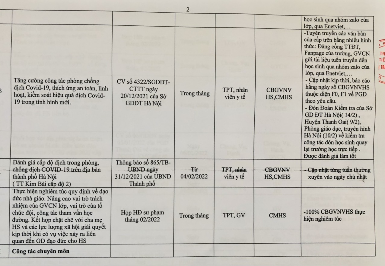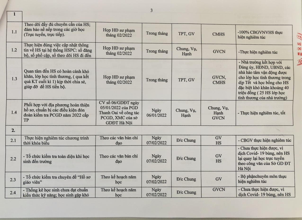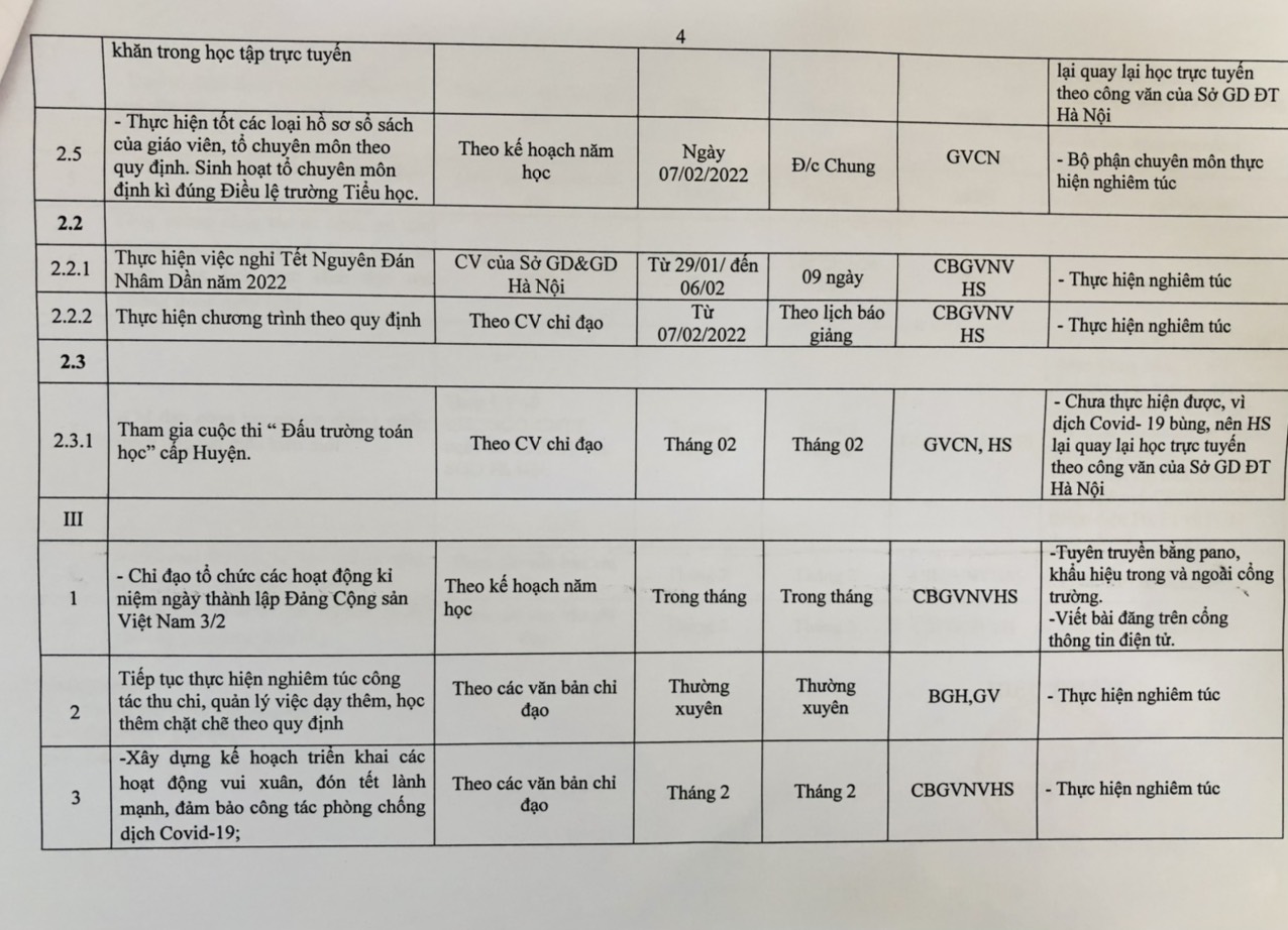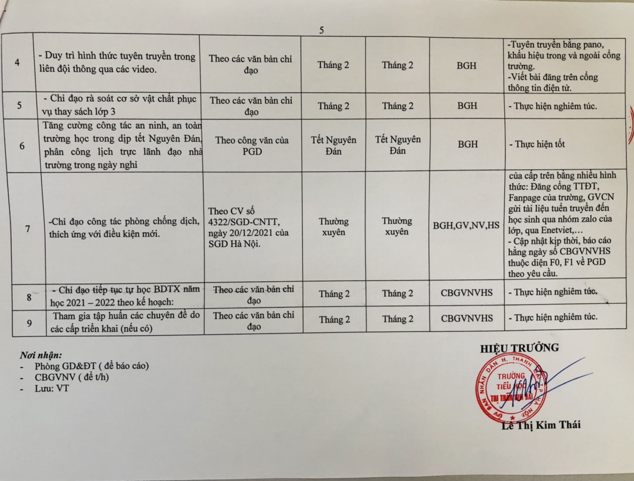 KẾ HOẠCH CÔNG TÁC THÁNG 2/2022 - TRƯỜNG TIỂU HỌC THỊ TRẤN KIM BÀI
