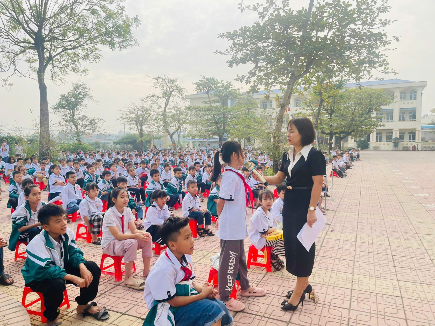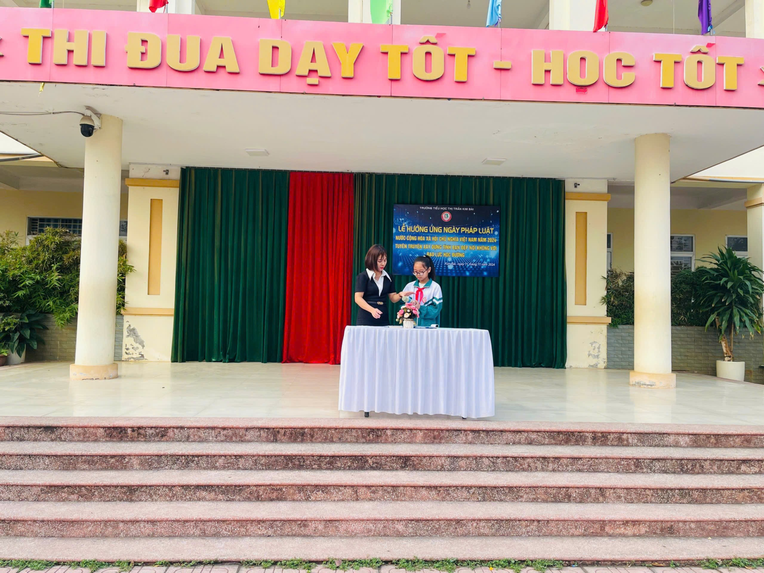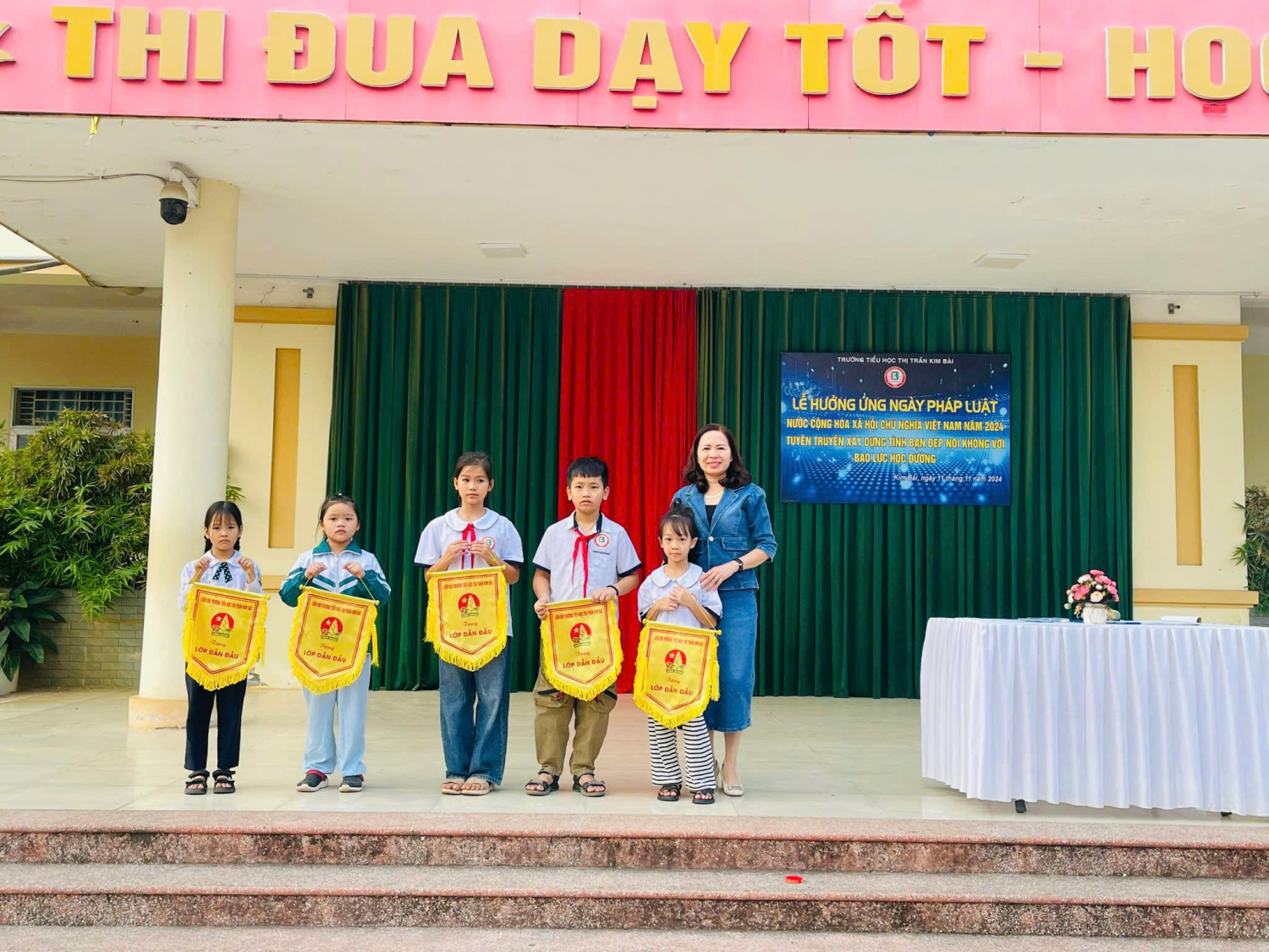 LỄ PHÁT ĐỘNG “HƯỞNG ỨNG NGÀY PHÁP LUẬT NƯỚC CỘNG HÒA XHCN VIỆT NAM” TRANG TRỌNG, Ý NGHĨA CỦA THẦY VÀ TRÒ TRƯỜNG TIỂU HỌC THỊ TRẤN KIM BÀI