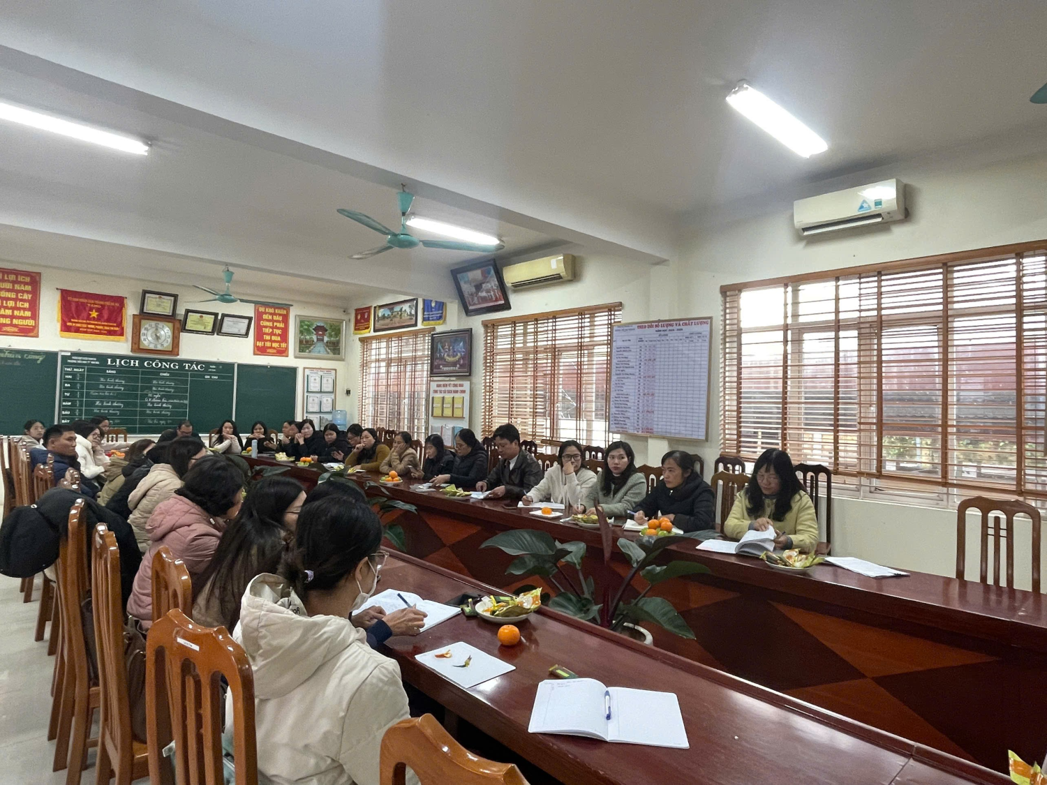 Cũng vào hồi 16h30 cùng ngày, trường Tiểu học Kim Bài tổ chức họp hội đồng sư phạm thường kì tháng 1/2026 năm học 2025 – 2026, với sự tham dự đầy đủ của Ban Giám hiệu cùng toàn thể cán bộ, giáo viên, nhân viên nhà trường. Cuộc họp nhằm đánh giá tình hình thực hiện nhiệm vụ trong thời gian qua, đồng thời triển khai các nội dung công tác trọng tâm trong thời gian tới. Tại buổi họp, Ban Giám hiệu đã thông tin một số nội dung quan trọng liên quan đến công tác chuyên môn, nề nếp dạy học, công tác chủ nhiệm, các hoạt động giáo dục và những nhiệm vụ cần tập trung thực hiện trong giai đoạn tiếp theo. Các ý kiến trao đổi tại cuộc họp diễn ra nghiêm túc, thẳng thắn và mang tính xây dựng, thể hiện tinh thần trách nhiệm, đoàn kết của tập thể Hội đồng sư phạm nhà trường trong việc nâng cao chất lượng giáo dục và hoàn thành tốt nhiệm vụ năm học. Buổi họp Hội đồng sư phạm kết thúc trong không khí thống nhất, đồng thuận cao, tạo động lực để toàn thể cán bộ, giáo viên, nhân viên Trường Tiểu học Kim Bài tiếp tục nỗ lực, phấn đấu hoàn thành tốt các mục tiêu đã đề ra.