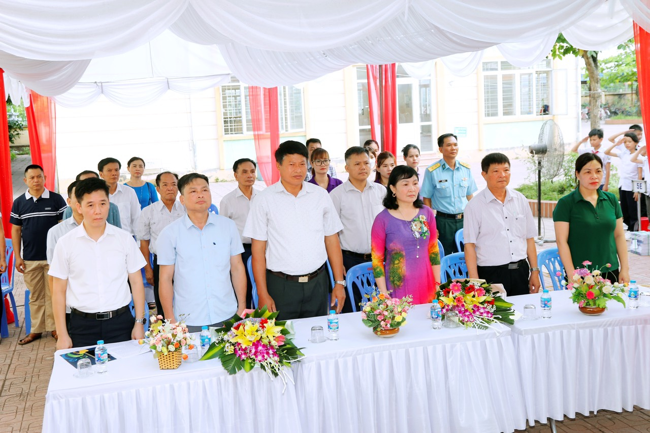 Trong buổi tổng kết, thay mặt lãnh đạo thị trấn ông Hoàng Quốc Đạt- HUV - Bí thư đảng ủy thị trấn đã ghi nhận các thành tích mà nhà trường đã đạt được trong năm học vừa qua, đồng thời động viên, khích lệ thầy và trò nhà trường tiếp tục phát huy những thành tích đã đạt được trong những năm học tiếp theo. Ông Hoàng Quốc Đạt- HUV - Bí thư đảng ủy thị trấn phát biểu tại buổi lễ